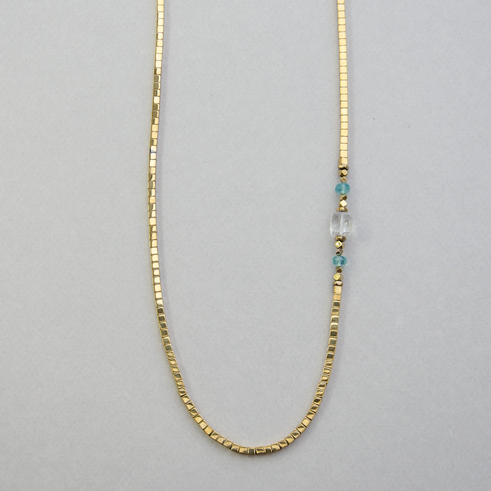 The Slink - a delicate strand of metallic gold electroplated hematite cube beads with a clear quartz faceted cube and pink amethyst tyres, will bring a sparkle to your day, whether you are at work, on the beach or out to party.